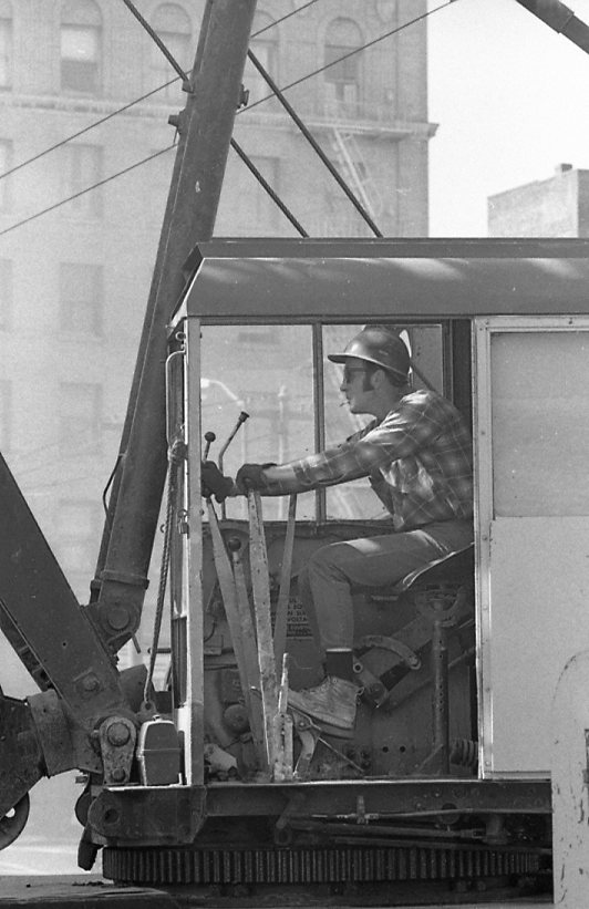 Lee Sims Tenants and Owners in Opposition to Redevelopment (TOOR) Photograph, roll #160 Photographer's notes from accompanying document: 160 October 1970, 700 block Howard Street, south side, demolition of "South Center Library." Jim's General Merchandise, store, 789 Howard. "Buy, Sell, Trade Merchandise." Photographer's notes from accompanying index card: 160, BLDG DESTRUCTION - SFNLA, Oct 70.