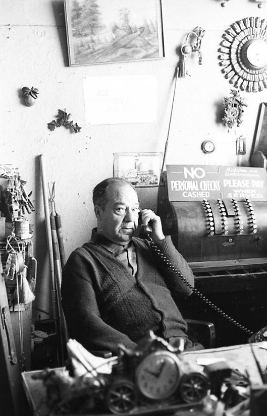 Lee Sims Tenants and Owners in Opposition to Redevelopment (TOOR) Photograph, roll #161 Sign on cash register: "NO personal checks cashed, mistakes are embarrassing, please pay when served." Photographer's notes from accompanying document: "161, October 1970, Jim's General Merchandise Store, 789 Howard."