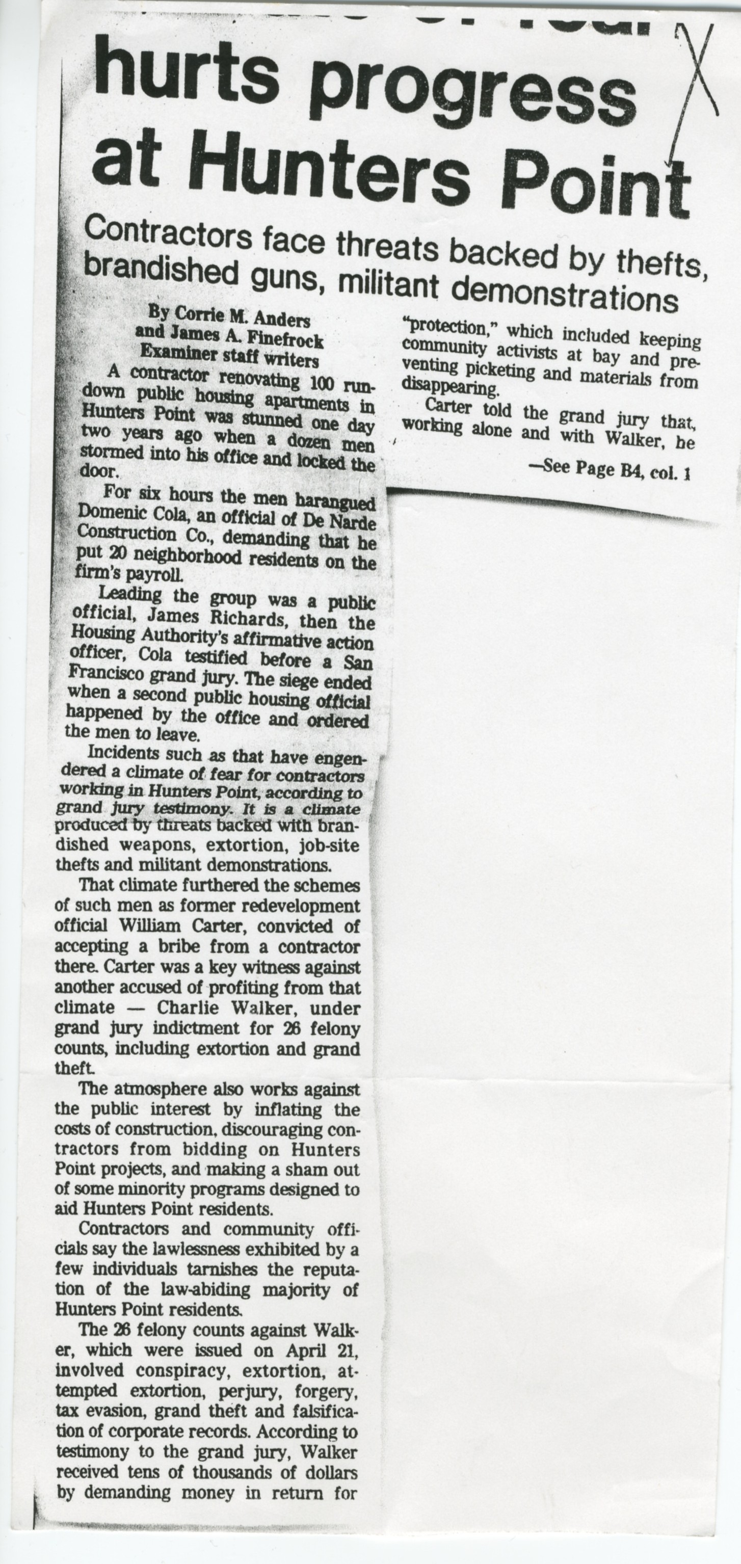 Hurts Progress at Hunters Point: Contractors face threats backed by thefts, brandished guns, militant demostrations