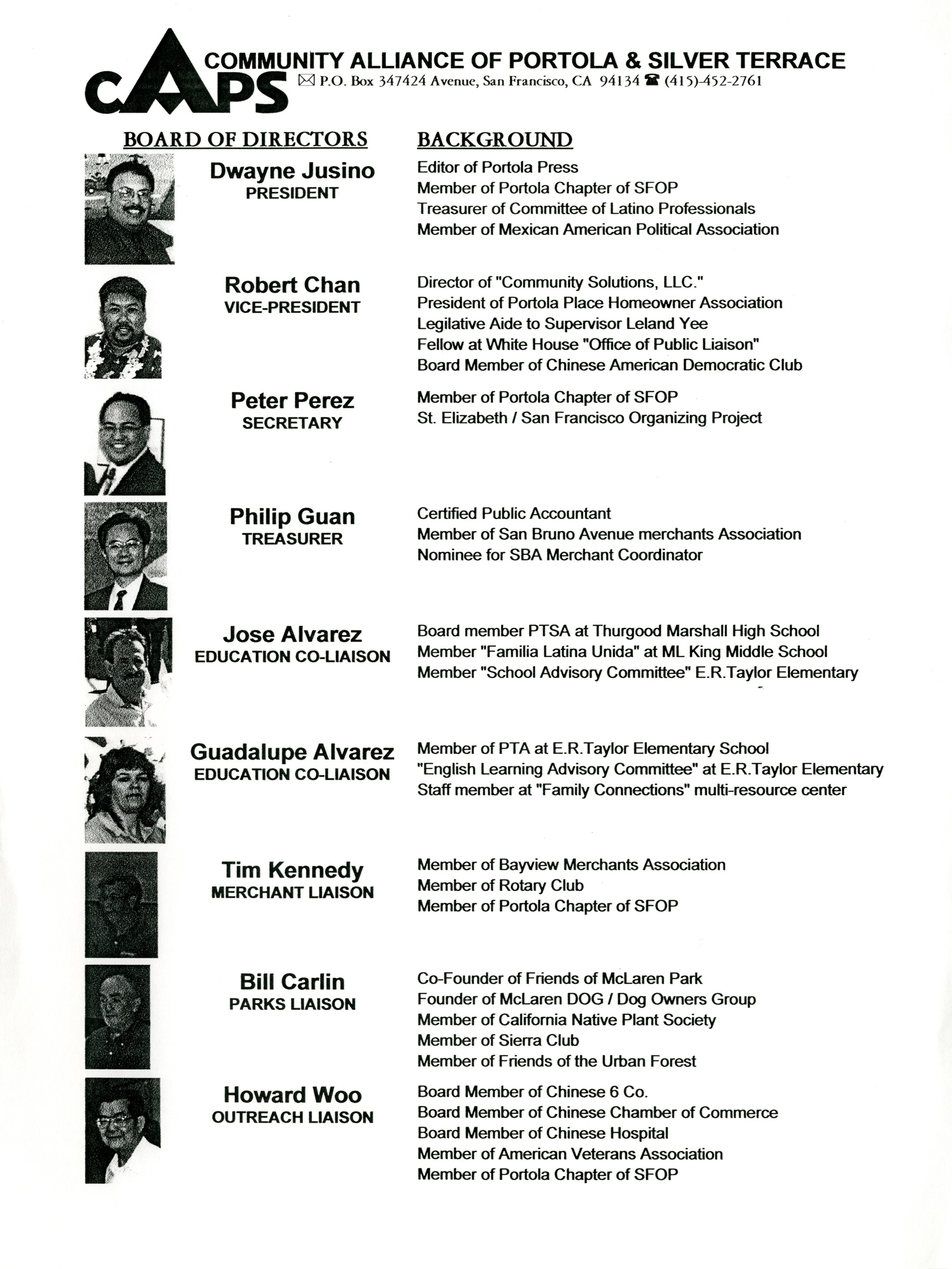 Community Alliance of Portola & Silver Terrace Board of Directors