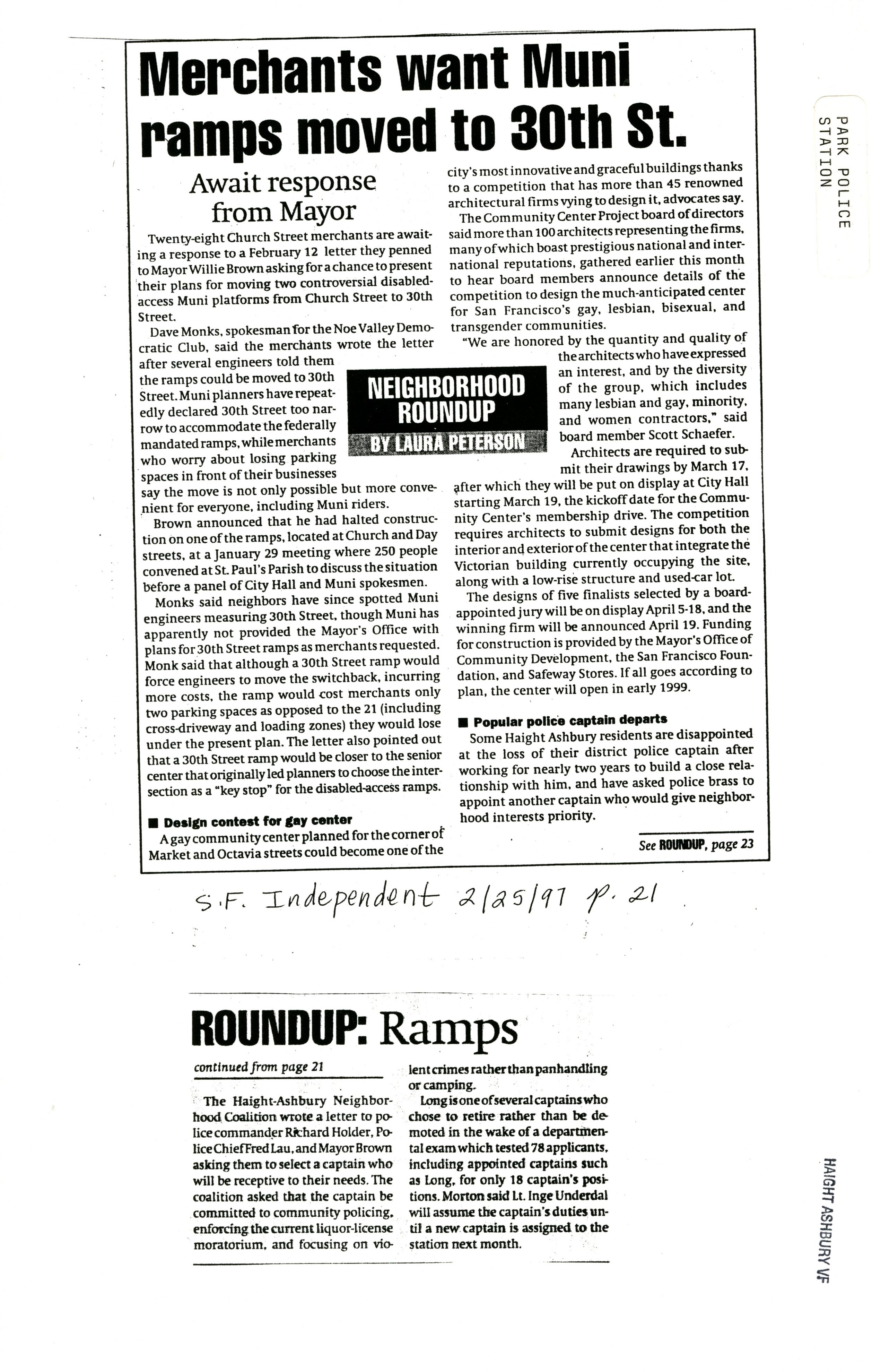 Neighborhood Roundup, Popular Police Captain Departs, San Francisco Independent, February 25 1997