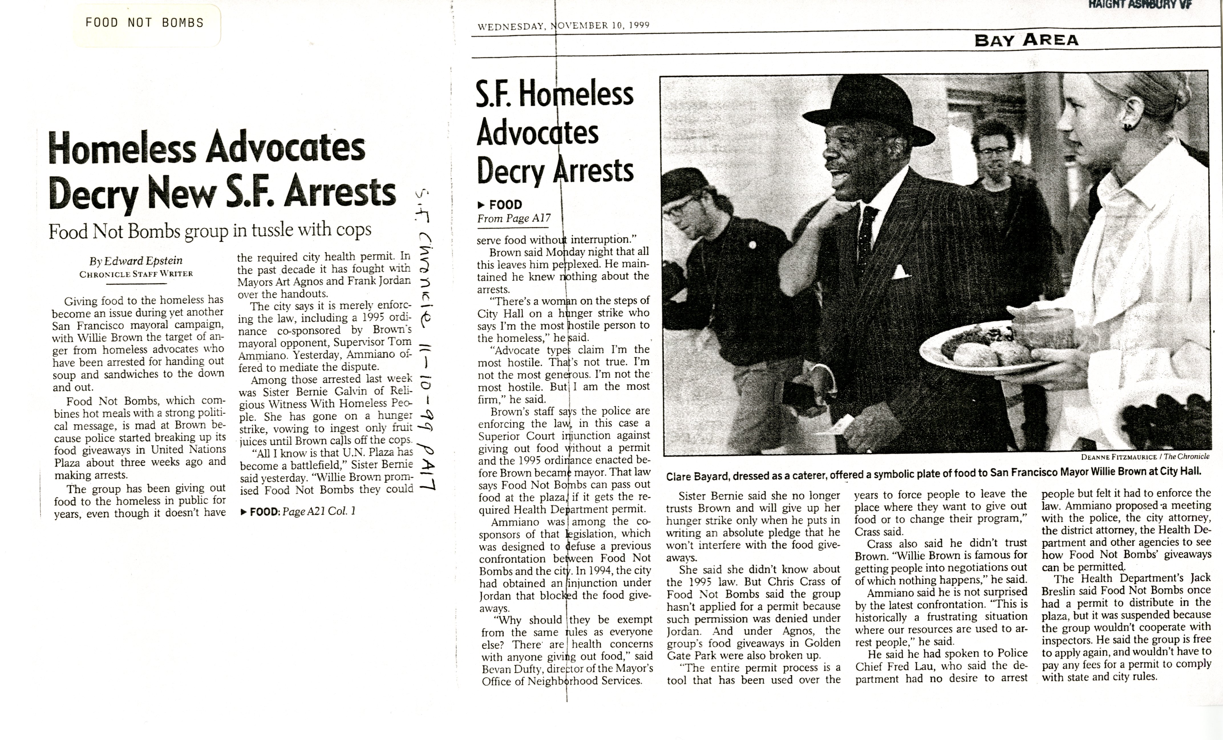Homeless Advocates Decry New SF Arrests, San Francisco Chronicle, November 10 1999