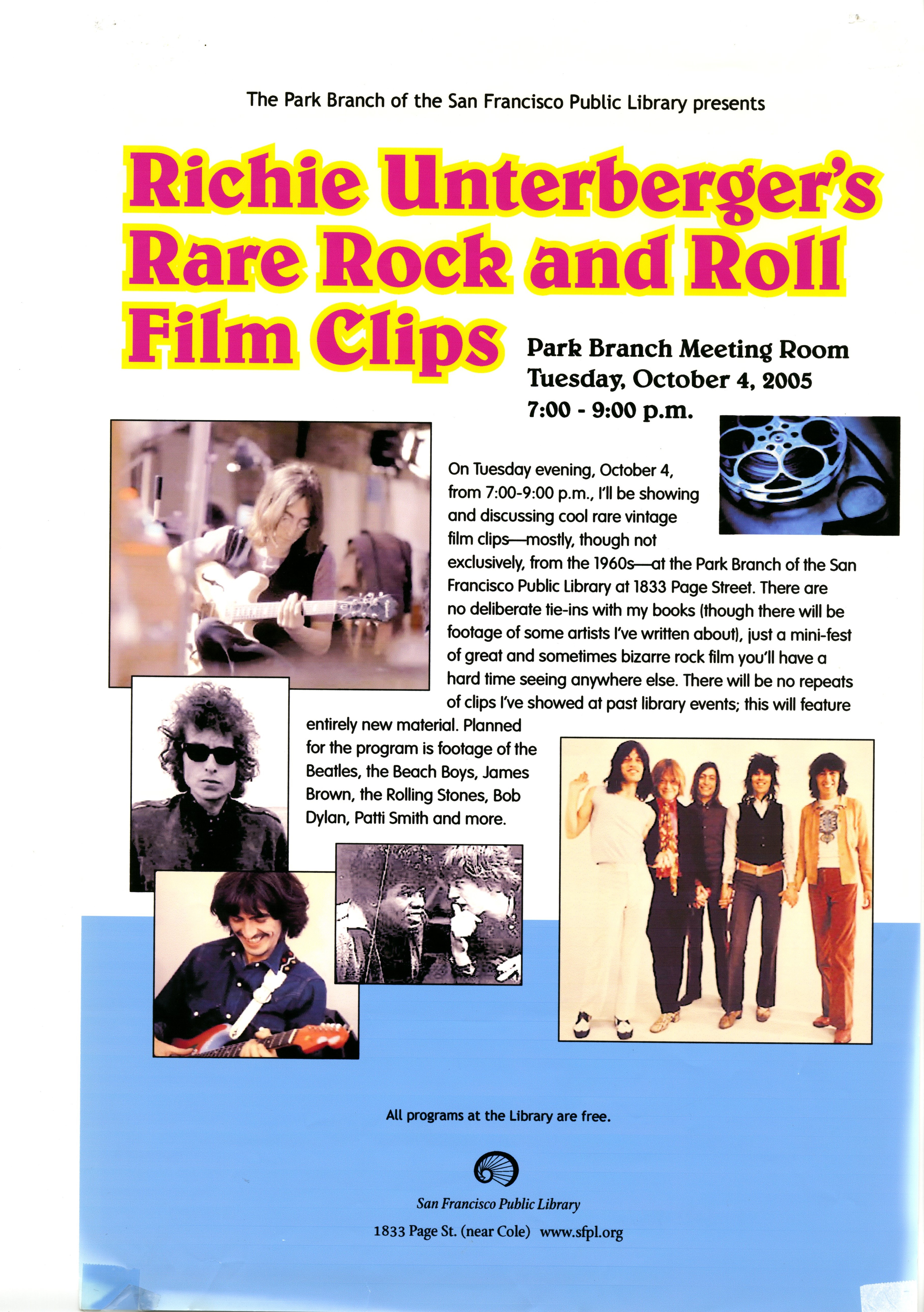 Richie Unterberger's Rare Rock and Roll Film Clips, Poster, October 2005, Park Branch