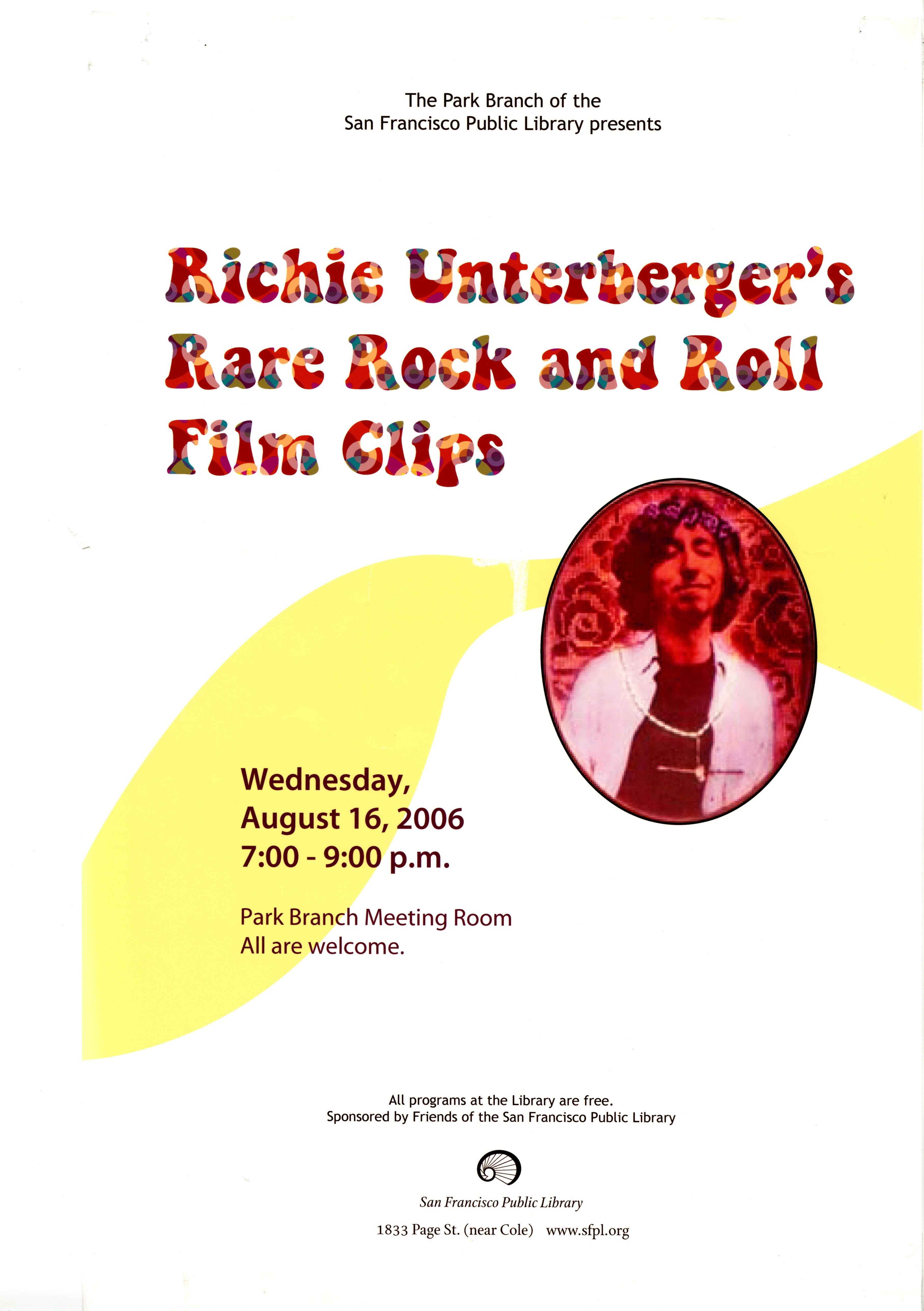Richie Unterberger's Rare Rock and Roll Film Clips, Poster, August 2006, Park Branch