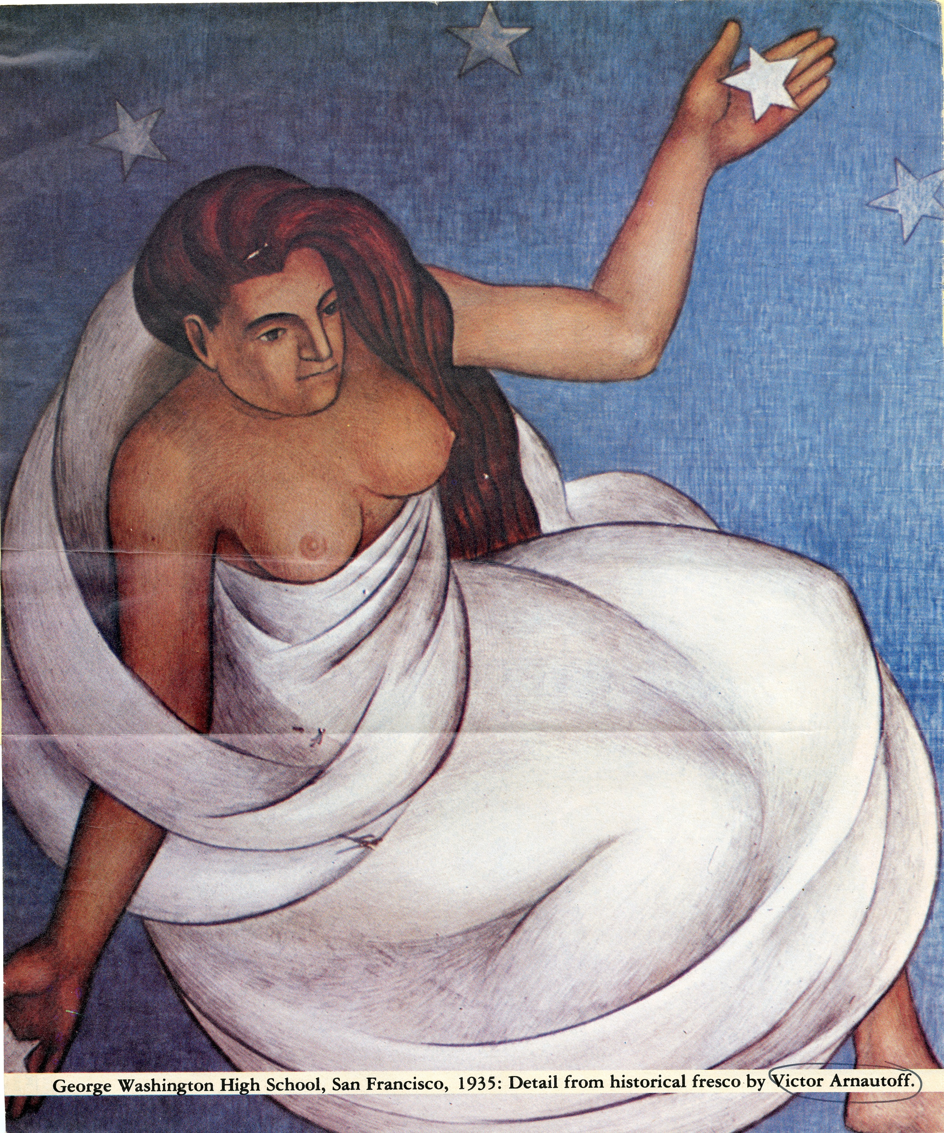 Picture of half-naked woman: Detail from historical fresco by Victor Arnautoff